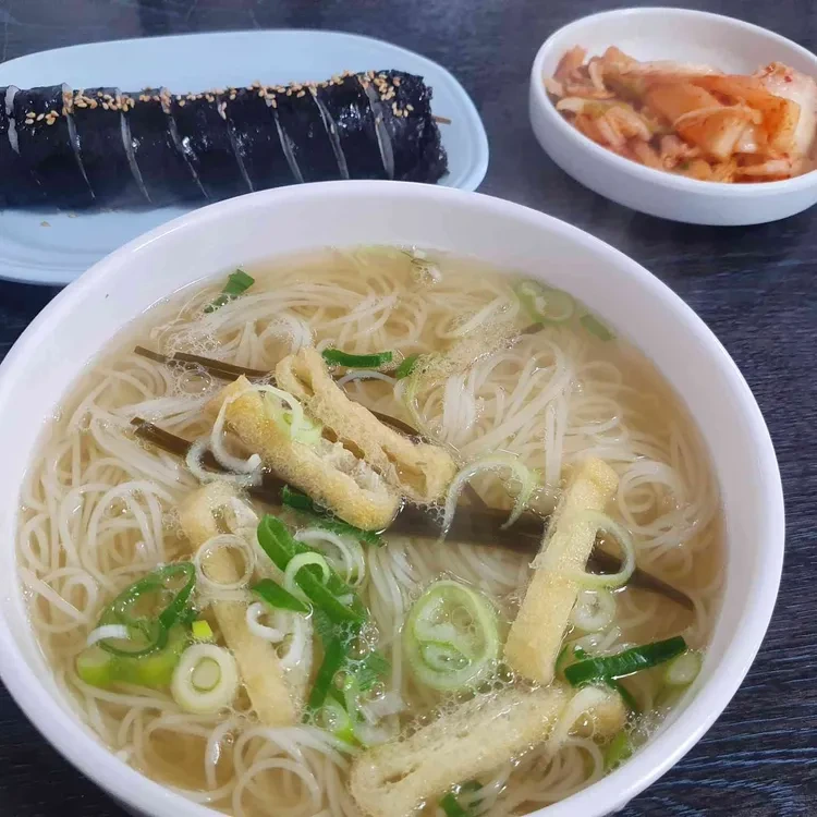 에서 보실 수 있는 것처럼, 국수와 함께 나오는 김치와 김밥도 별미랍니다. 김밥은 3,000원 정도로, 국수와 함께 주문하면 더욱 풍성한 한 끼가 되겠죠!