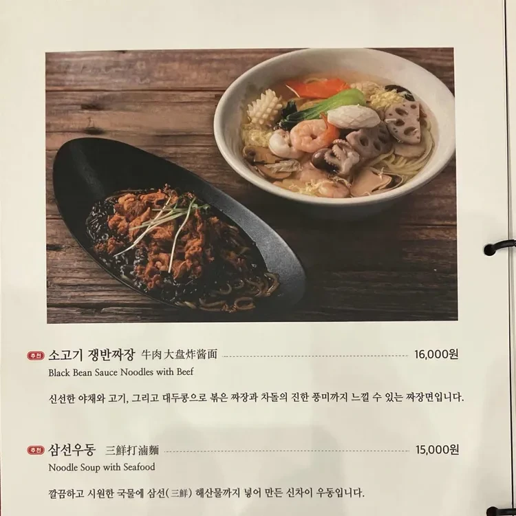 신차이의 추천 메뉴는 여러 가지가 있지만, 특히 짜장면 과 해물짬뽕 이 인기랍니다. 짜장면은 16,000원, 해물짬뽕은 15,000원으로 가격도 합리적이에요. 짜장면은 진한 검은색 소스와 함께 제공되며, 신선한 채소와 고기가 듬뿍 들어가 있어요. 해물짬뽕은 다양한 해산물과 채소가 어우러져 깊은 맛을 자랑한답니다.