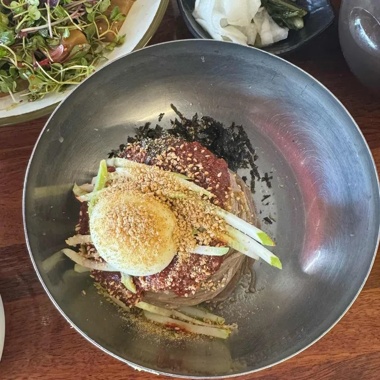 막국수 외에도 다양한 사이드 메뉴가 있어요. 예를 들어, 도토리묵무침이나 메밀부침도 인기 메뉴로, 함께 주문하면 더욱 풍성한 식사를 즐길 수 있어요.