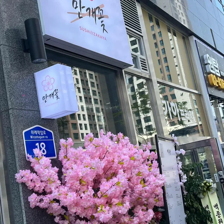 만개꽃은 경기도 하남시 위례학암로 18에 위치하고 있어요. 가하프라자 1층에 자리 잡고 있어서 찾기 쉽답니다. 외관은 현대적인 디자인으로, 유리창을 통해 내부가 보이는 구조예요. 특히, 입구 앞에는 화려한 인조 벚꽃이 장식되어 있어, 사진 찍기에도 좋은 포토존이랍니다.