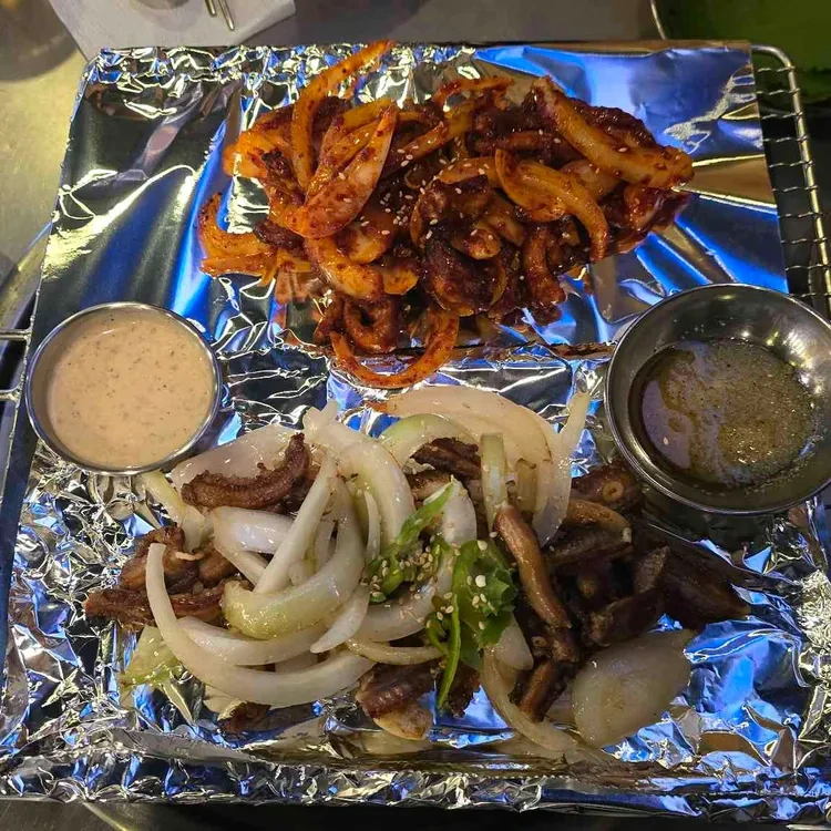 그리고 해산물을 좋아하신다면, 해물 모듬구이도 추천해요. 신선한 해산물이 가득 담겨 있어요.