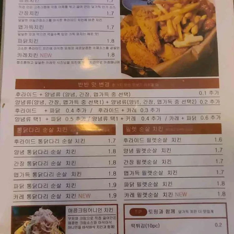 달가득치킨의 메뉴는 다양하고 가격대도 합리적이에요. 기본적인 후라이드 치킨부터 양념 치킨, 파닭까지 여러 가지 옵션이 있어요. 특히 추천하고 싶은 메뉴는 '반반치킨'과 '한통가득 후라이드 치킨'이에요. 반반치킨은 21,000원으로, 후라이드와 양념이 함께 나와서 두 가지 맛을 동시에 즐길 수 있어요.