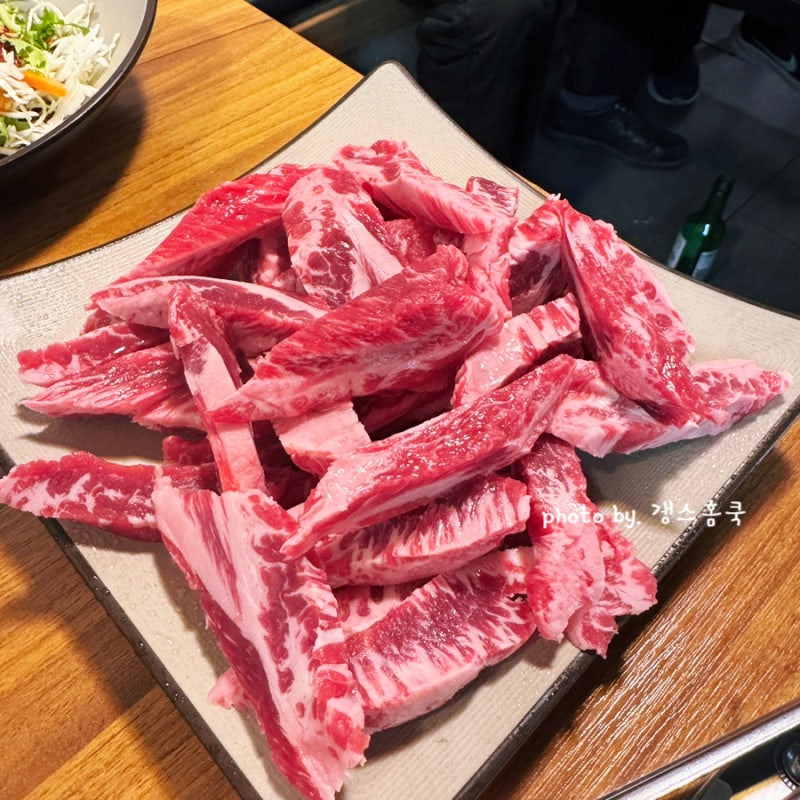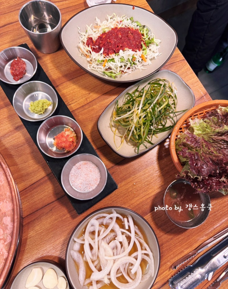 에서 보이는 것처럼, 고기의 질이 아주 좋아서 한 입 베어물면 육즙이 팡팡 터져요. 그리고 고기와 함께 나오는 다양한 반찬들도 맛있어요.