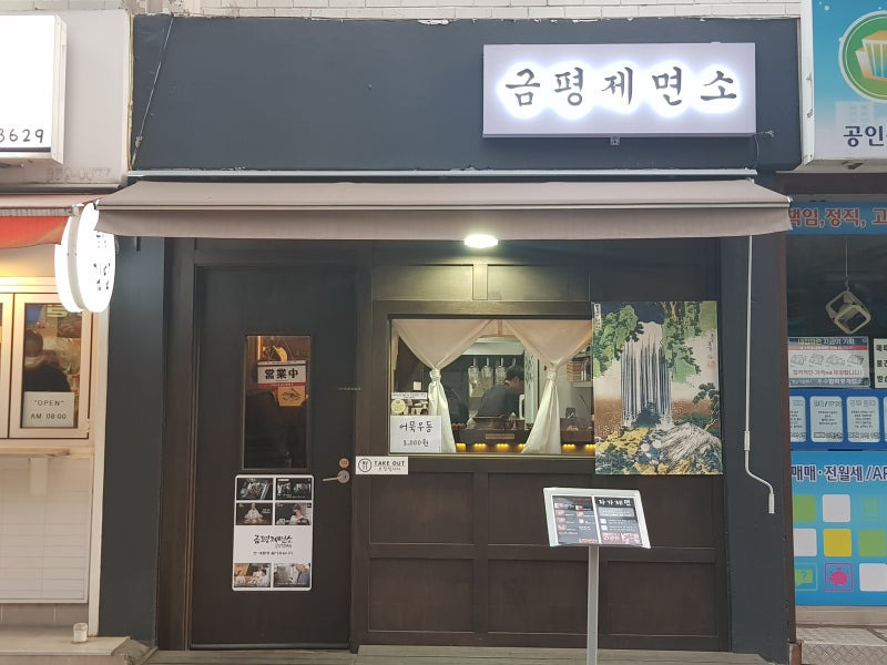 금평제면소는 은평구 응암동에 위치해 있어요. 이곳은 우동 전문점으로, 신선한 재료와 정성 가득한 조리법으로 많은 손님들을 맞이하고 있답니다. 외관은 현대적이면서도 아늑한 느낌을 주고, 입구에는 메뉴판이 있어 쉽게 선택할 수 있어요.