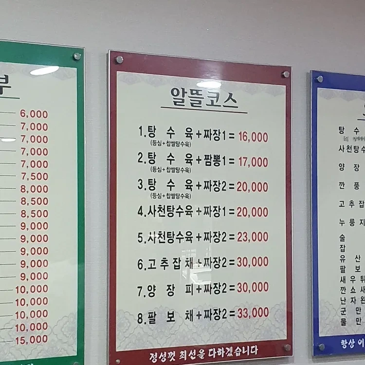 또한, 대성각의 메뉴는 가격대가 다양해요. 저렴한 메뉴는 6,000원부터 시작하고, 고급 코스는 33,000원까지 있어요. 다양한 선택지가 있어 가족 단위 손님이나 친구들과 함께 가기에도 좋답니다.