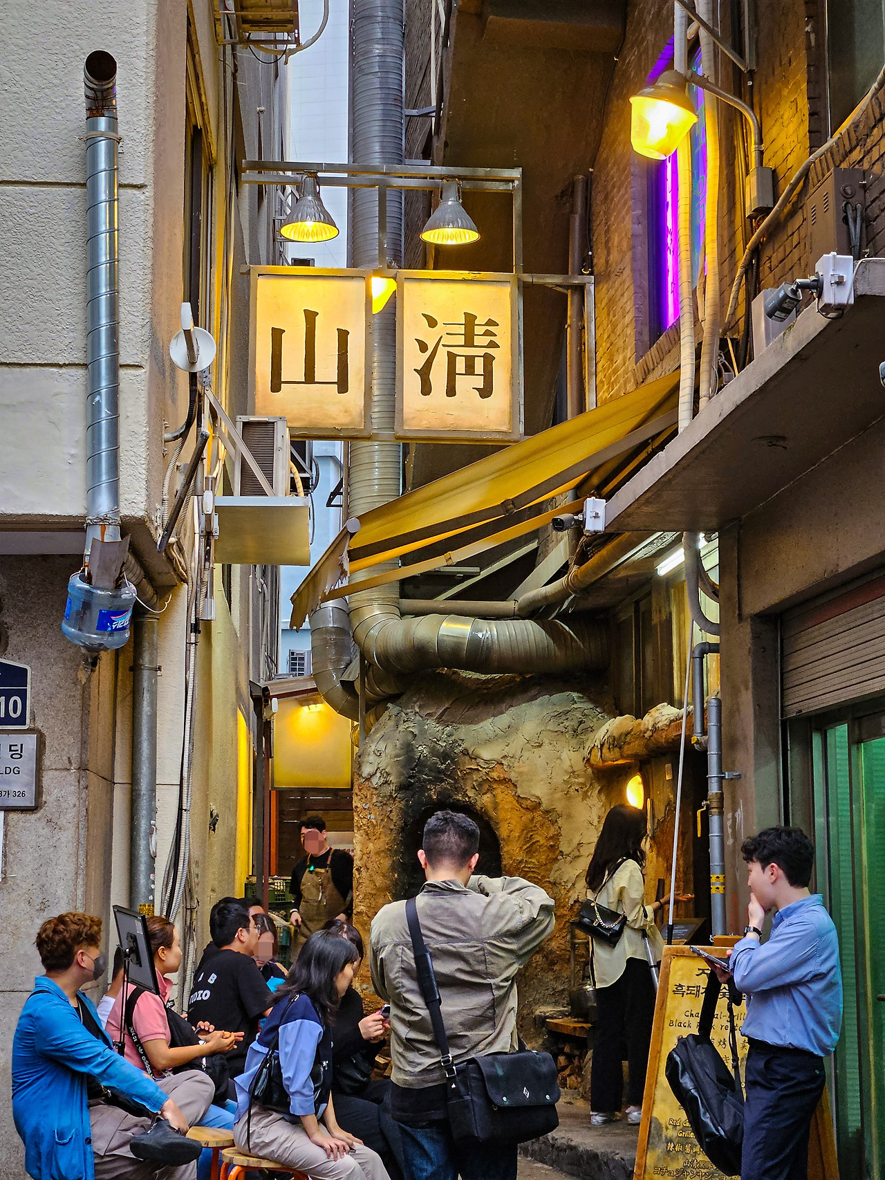 산청숯불가든은 서울 을지로에 위치해 있어요. 을지로 3가역에서 도보로 약 5분 거리에 위치하고 있어서 접근성이 아주 좋아요. 이곳은 외관부터 전통적인 느낌이 물씬 풍기는데요, 특히 돌담과 나무로 된 입구가 인상적이에요.