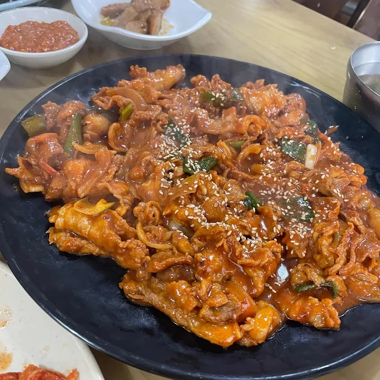 고향가정식백반의 메뉴는 다양해요. 특히 제육볶음이 인기인데, 매콤한 양념과 부드러운 고기가 조화를 이루어 정말 맛있어요.