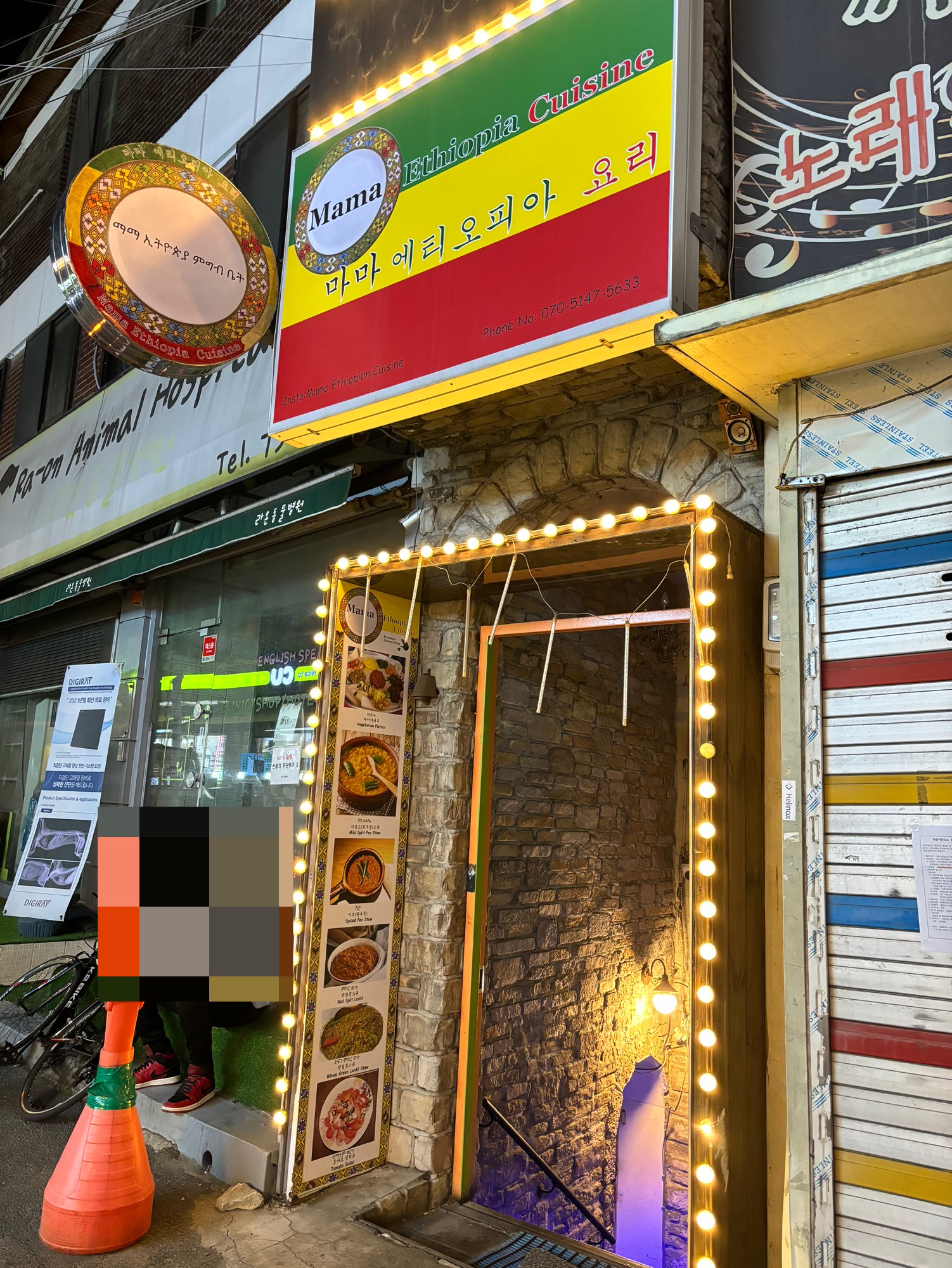 마마 에티오피아 요리는 이태원 경리단길에 위치해 있어요. 이곳은 다양한 음식점과 카페가 밀집해 있는 지역으로, 외국인 관광객과 현지인 모두에게 인기 있는 장소랍니다. 식당의 입구는 화려한 간판과 밝은 조명으로 장식되어 있어, 지나가는 사람들의 시선을 사로잡아요.