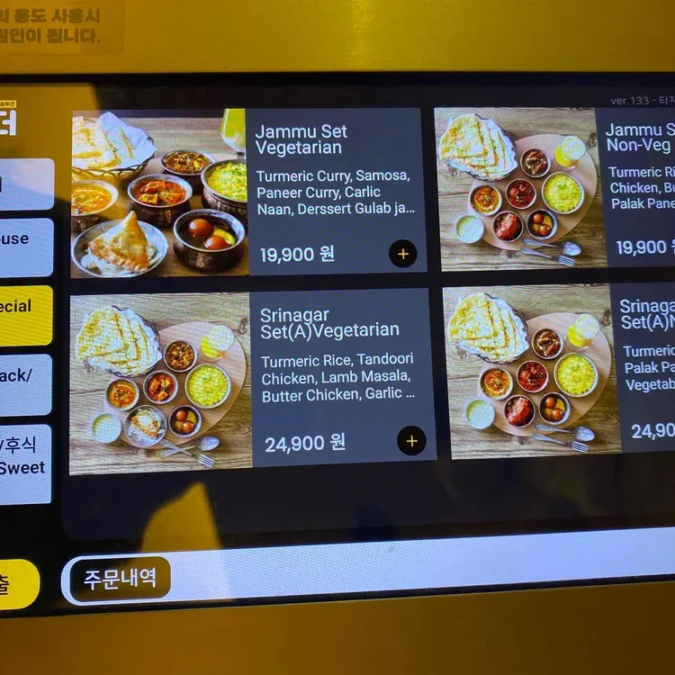 타지펠리스의 메뉴는 정말 다양해요. 특히 추천하고 싶은 메뉴는 '자무 세트'와 '스리나가르 세트'예요. 자무 세트는 채식주의자를 위한 메뉴로, 커리와 사모사, 파니르 커리, 갈릭 난, 디저트가 포함되어 19,900원이에요. 스리나가르 세트는 비건과 비건이 아닌 분들 모두 즐길 수 있는 메뉴로, 24,900원에 다양한 요리를 맛볼 수 있어요.