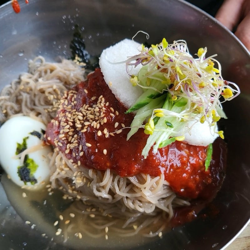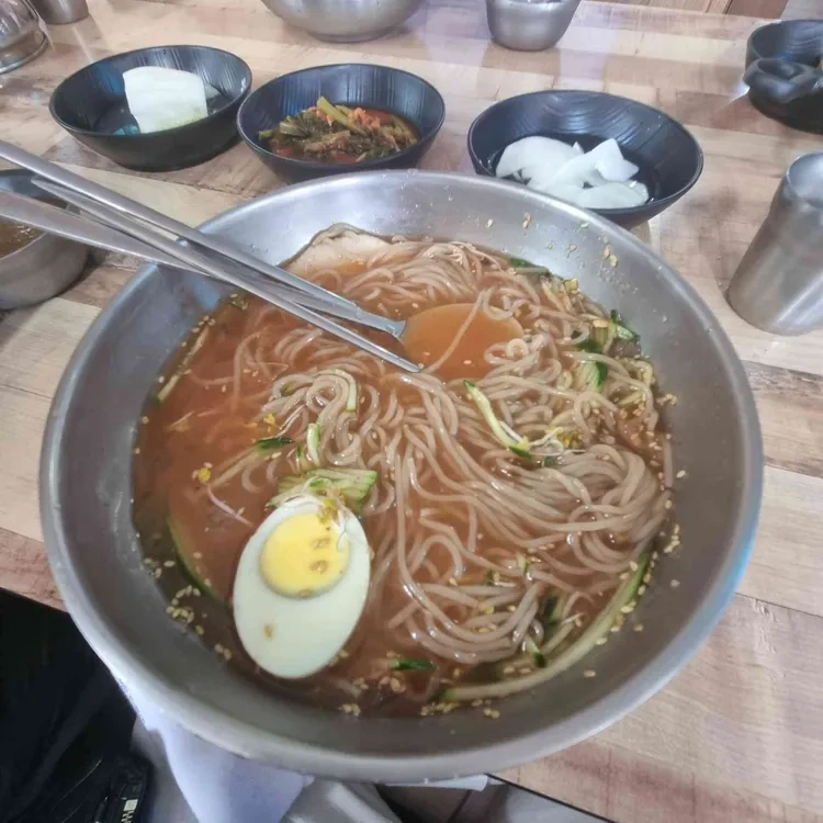 막국수는 정말 맛있어요! 면발이 쫄깃하고, 시원한 육수와 함께 먹으니 여름철에 특히 잘 어울려요. 비빔막국수는 매콤한 양념이 잘 배어 있어, 아삭한 채소와 함께 먹으면 정말 맛있답니다. 사이드 메뉴로는 김치와 다양한 반찬이 제공되는데, 이 또한 맛이 뛰어나요.