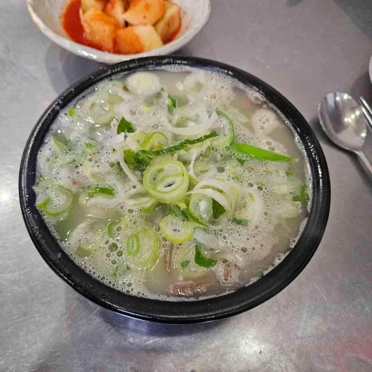국밥의 국물은 진하고 깊은 맛이 나요. 고기와 함께 끓여낸 국물은 정말 맛있고, 파와 함께 먹으면 더욱 풍미가 살아나요.