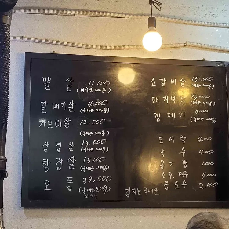 이곳의 추천 메뉴는 당연히 돼지뽈살과 갈매기살이에요. 돼지뽈살은 11,000원, 갈매기살은 11,000원으로 가격도 합리적이에요. 삼겹살은 13,000원, 항정살은 15,000원으로 다양한 선택지가 있답니다. 메뉴판은 손글씨로 되어 있어 정감이 가고, 가격도 저렴해서 부담 없이 즐길 수 있어요.