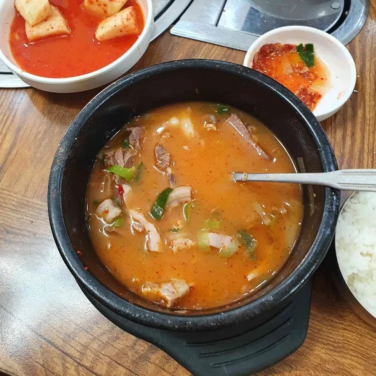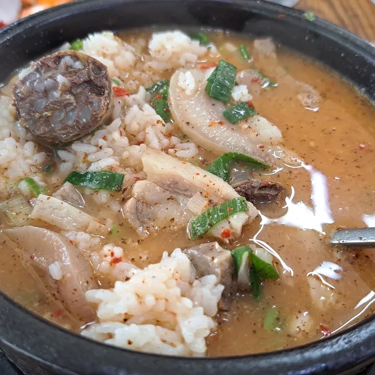 이곳의 대표 메뉴는 부대찌개와 순대국이에요. 부대찌개는 다양한 재료가 들어가서 깊고 진한 맛을 자랑해요. 특히, 고기와 소시지, 그리고 각종 채소가 어우러져 풍부한 국물 맛을 느낄 수 있어요. 순대국은 신선한 재료로 만들어져서 국물 맛이 깔끔하고, 순대의 쫄깃한 식감이 일품이에요.