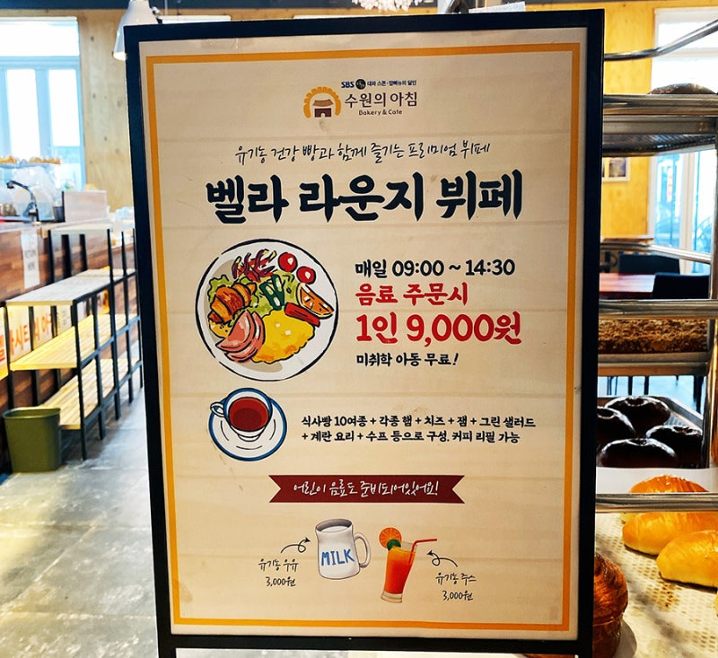 이 카페의 메뉴는 다양하고 가격대도 합리적입니다. 특히 추천하고 싶은 메뉴는 '벨라 라운지 뷔페'로, 매일 오전 9시부터 오후 2시 30분까지 운영되며, 가격은 9,000원입니다. 뷔페에서는 신선한 해산물, 다양한 육류, 건강한 샐러드 등 여러 가지 음식을 즐길 수 있어요. 아이들을 위한 무료 음료도 제공된답니다. 이 외에도 다양한 베이커리 메뉴와 음료들이 준비되어 있어 선택의 폭이 넓어요.