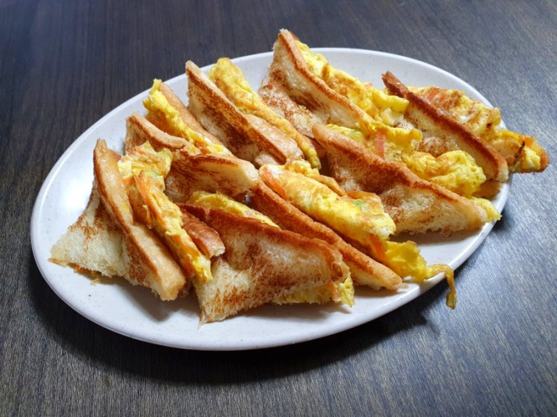자매분식의 대표 메뉴는 바로 토스트예요. 이곳의 토스트는 속이 가득한 달걀과 바삭한 식감으로 많은 사람들에게 사랑받고 있어요. 특히, 아래의 사진을 보면 알 수 있듯이, 토스트는 노릇노릇하게 구워져 있어 정말 맛있어 보이네요.
