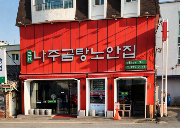 '나주곰탕 노안집'은 나주에서 가장 유명한 곰탕집 중 하나로, 그 역사가 무려 60년이 넘어요. 이곳은 나주곰탕의 본고장답게 진한 육수와 부드러운 고기가 특징이에요. 위치는 나주 시내 중심가에 있어 접근성이 좋고, 외관은 밝은 빨간색으로 눈에 띄어요.