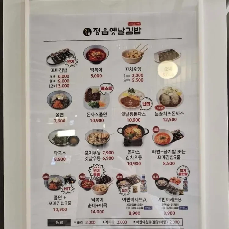 김밥은 6,000원부터 13,000원까지 다양하게 제공되며, 떡볶이는 5,000원으로 저렴하게 즐길 수 있어요. 특히, 쫄면과 김밥이 함께 나오는 세트 메뉴는 10,900원으로 가성비가 뛰어나죠. 최근에는 눈꽃치즈돈까스 같은 새로운 메뉴도 추가되어 더욱 풍성한 선택지를 제공하고 있어요.