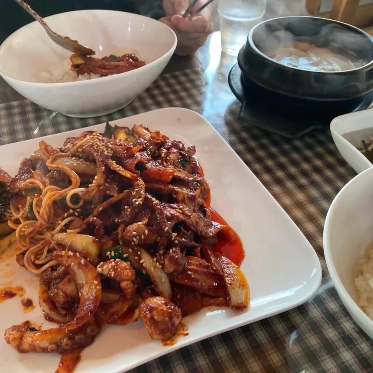낙지볶음과 함께 나오는 반찬들도 정말 맛있어요. 특히 된장찌개는 구수하고, 미역무침은 신선한 맛이 일품이에요. 반찬들이 낙지볶음과 잘 어울려서, 식사가 더욱 풍성해지는 느낌이었어요.