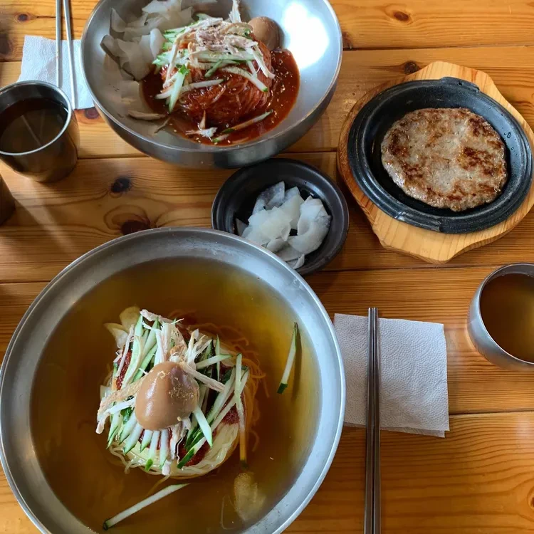 이곳의 대표 메뉴는 밀면이에요. 밀면은 차가운 국수로, 시원한 육수와 함께 제공되죠. 가격은 대략 8,000원에서 10,000원 사이로, 양도 푸짐해요. 비빔밀면도 인기 메뉴 중 하나인데, 매콤한 양념이 어우러져 정말 맛있답니다. 비빔밀면의 가격은 약 9,000원 정도에요. 그리고 떡갈비도 추천해요. 부드러운 고기와 함께 나오는 떡갈비는 12,000원 정도로, 밀면과 함께 먹으면 더욱 맛있어요.