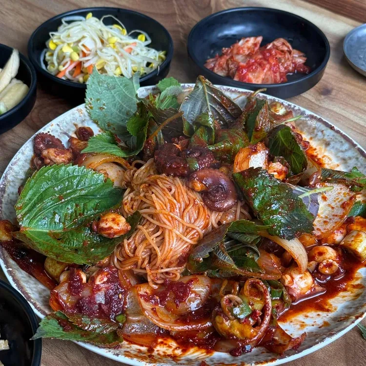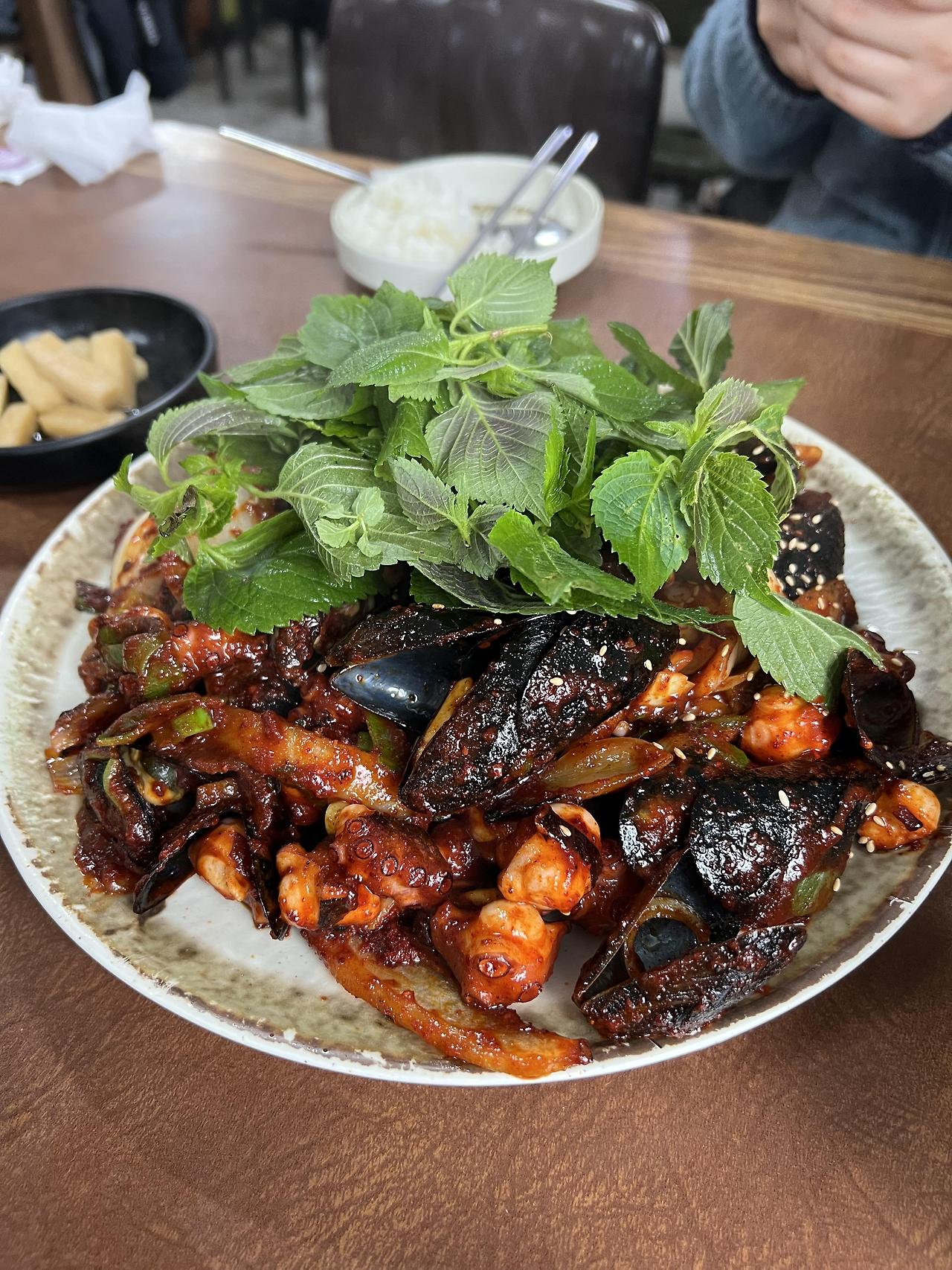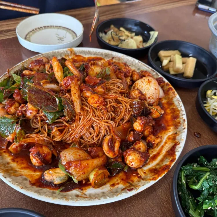 이곳의 추천 메뉴는 단연코 돌문어볶음입니다. 신선한 돌문어를 매콤한 양념과 함께 볶아내어, 쫄깃한 식감과 풍부한 맛을 자랑합니다. 또한, 해물파전과 함께 곁들여 먹으면 더욱 맛있습니다. 해물파전은 바삭한 식감과 신선한 해산물이 가득 들어가 있어, 함께 주문하면 좋습니다.