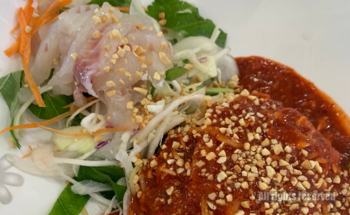 회국수는 신선한 회와 함께 제공되며, 국물 맛이 정말 일품이에요. 가격은 10,000원으로, 가성비도 뛰어나죠.