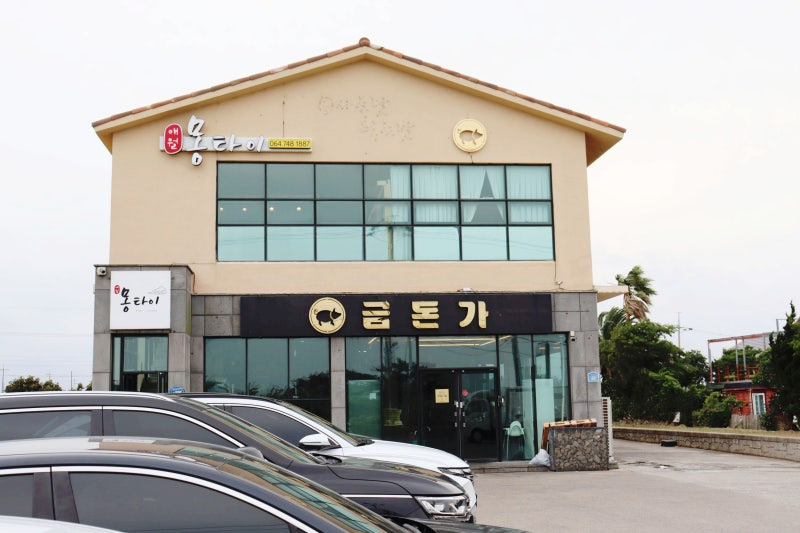 금돈가는 제주도 애월해안도로에 위치한 현대적인 디자인의 두 층 건물로, 외관이 정말 멋져요. 큰 유리창이 있어 내부가 잘 보이고, 외부에서 봐도 세련된 느낌을 줍니다.