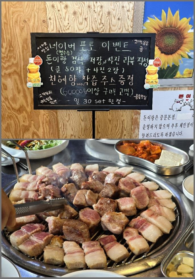 돈이랑은 제주도 서귀포시에 위치한 흑돼지 전문점이에요. 이곳은 제주 중문 관광단지와 가까워 관광 후에 들르기 좋은 위치에 있습니다. 외관은 아담하지만 내부는 넓고 쾌적해요. 특히, 제주도에서 유명한 흑돼지를 전문으로 하다 보니, 많은 관광객과 현지인들이 찾는 인기 맛집이랍니다.