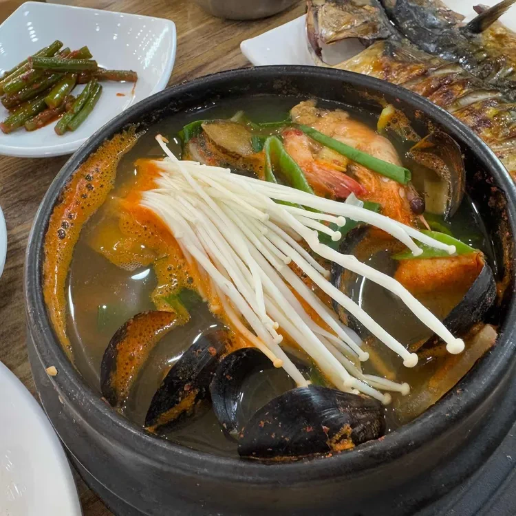- 설명 : 신선한 해산물이 가득한 해물탕은 국물이 진하고 깊은 맛을 자랑해요. 특히, 해산물의 풍미가 가득해요.