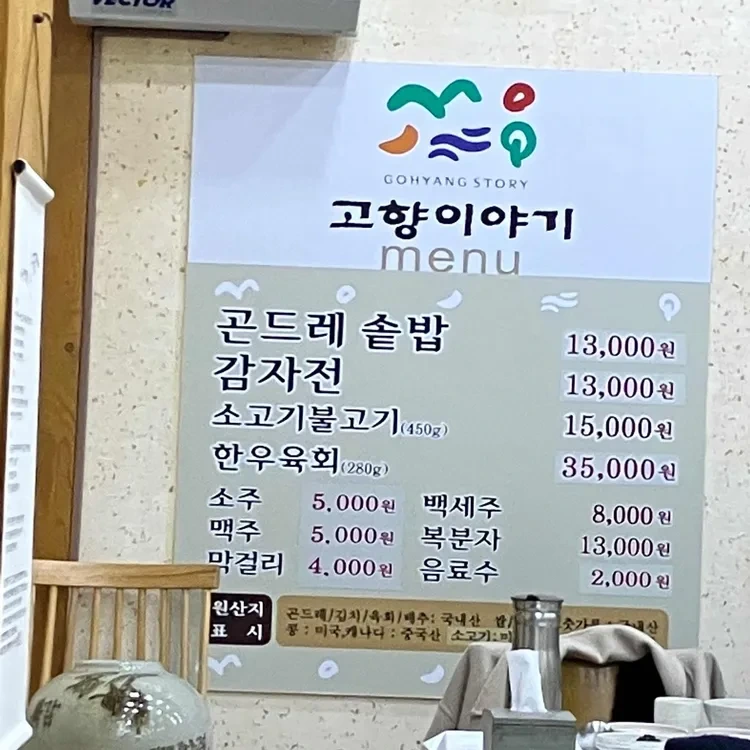 고향이야기의 메뉴는 다양하고 가격도 합리적이에요. 특히 추천하고 싶은 메뉴는 '곤드레솥밥'과 '감자전'이에요. 곤드레솥밥은 13,000원으로, 신선한 나물과 함께 제공되어 건강한 한 끼를 즐길 수 있어요. 감자전은 바삭하게 구워져서 고소한 맛이 일품이에요. 가격은 13,000원으로, 가성비가 뛰어나죠.
