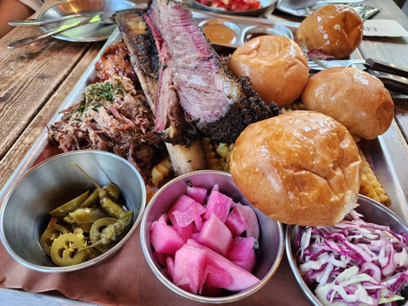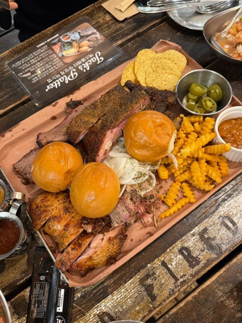 또한, 바베큐를 굽는 연기가 식당 안에 퍼지면서 고소한 향이 가득해요. 이곳에 들어서면 마치 텍사스의 한 바베큐 집에 온 듯한 기분이 들어요.