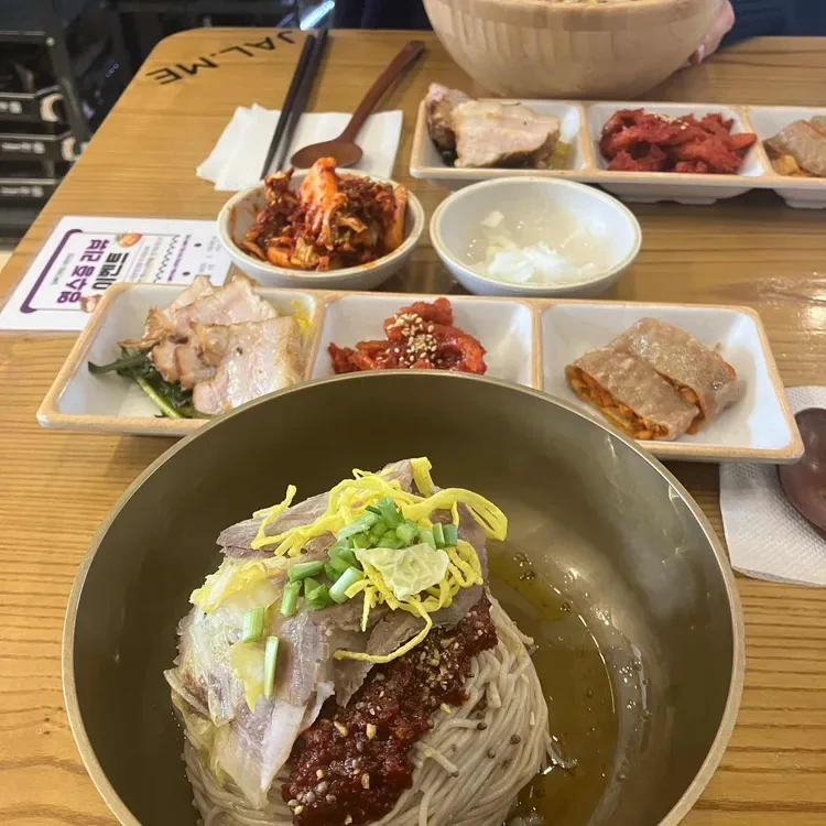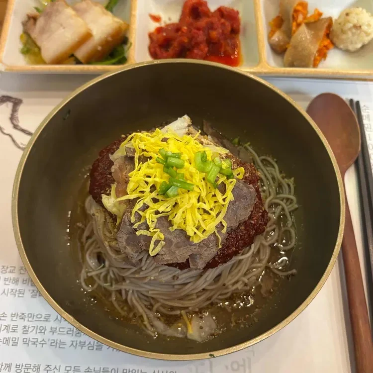 이곳의 대표 메뉴는 바로 막국수에요. 메밀로 만든 면은 쫄깃하고 고소한 맛이 일품이에요. 특히, 들기름 막국수는 고소한 맛이 더해져 많은 사람들이 찾는 메뉴랍니다. 그 외에도 다양한 고기 요리와 함께 제공되는 반찬들이 있어요.