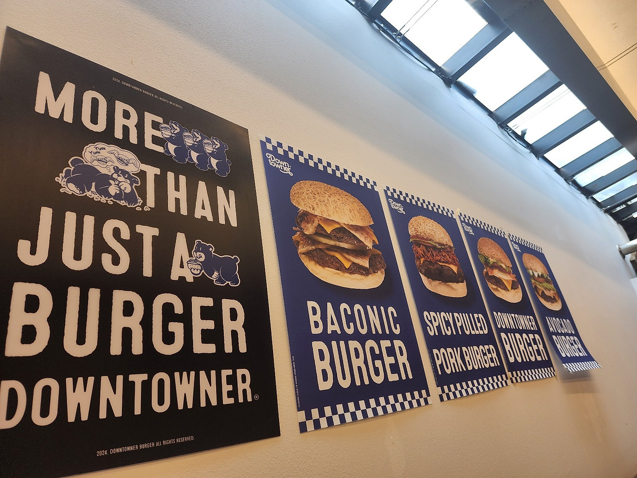 다운타우너의 내부는 모던하고 깔끔한 인테리어로 꾸며져 있어요. 벽면에는 다양한 버거 메뉴가 소개되어 있고, 아기자기한 소품들이 분위기를 한층 더 살려주고 있답니다.