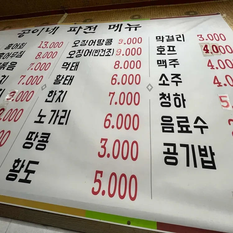 종합적으로 동이네파전은 해물파전의 진수를 맛볼 수 있는 곳이에요. 가격도 합리적이고, 맛도 훌륭해서 여러 번 방문하고 싶은 곳이랍니다. 직원들의 친절한 서비스와 아늑한 분위기 덕분에 더욱 특별한 경험을 할 수 있었어요. 해물파전을 좋아하신다면 꼭 한 번 방문해보세요!