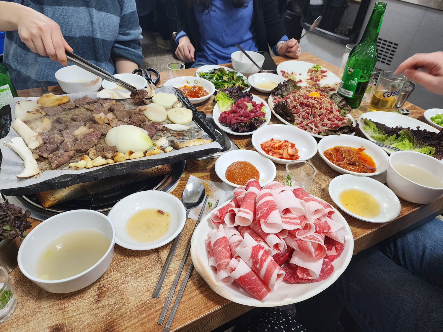 식당 내부는 깔끔하고 아늑한 분위기로, 친구나 가족과 함께 오기 좋은 곳이에요. 테이블 간격도 적당하여 프라이빗한 느낌을 주고, 고기를 구워 먹는 그릴이 중앙에 있어요. 고기를 굽는 냄새가 식욕을 자극하는데, 이곳의 분위기는 정말 좋답니다.