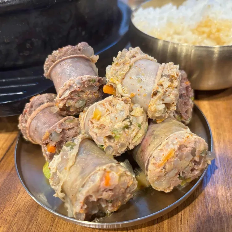순대스테이크는 고소하면서도 특별한 맛을 자랑해요. 순대를 스테이크 형태로 조리해 고급스러운 비주얼을 자랑하죠. 가격은 15,000원으로, 특별한 날에 먹기 좋은 메뉴예요.