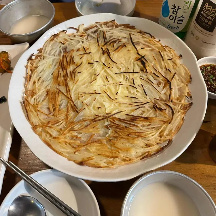 감자전은 바삭바삭한 식감이 매력적인데, 가격은 10,000원이에요. 이 메뉴는 친구들과 나눠 먹기에도 좋고, 소주와 함께하면 더욱 맛있어요.