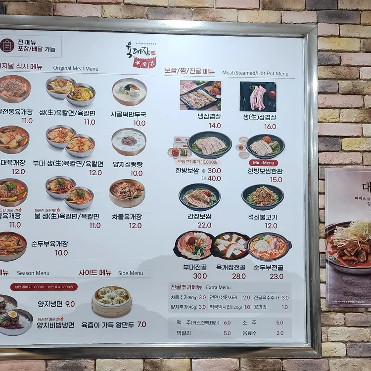 육대장의 대표 메뉴는 바로 육개장이에요. 매운 국물에 부드러운 고기와 다양한 채소가 들어가 있어 정말 맛있답니다. 가격은 대략 10,000원에서 12,000원 사이로, 양도 푸짐해요. 특히, 육회비빔밥도 추천하는 메뉴 중 하나인데, 신선한 육회와 함께 비벼 먹으면 정말 맛있어요.