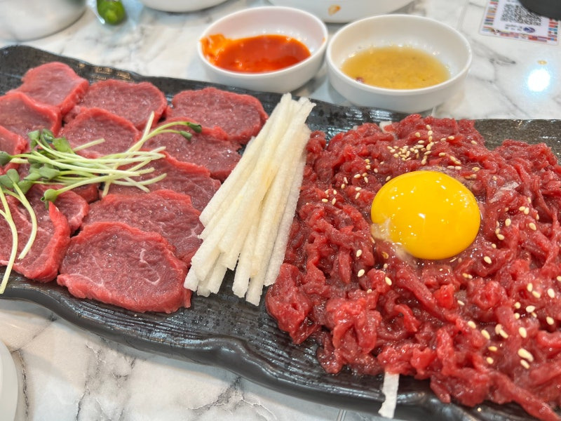 가격대는 매우 합리적이에요. 육회 한 접시는 약 15,000원 정도로, 신선한 재료를 고려했을 때 가성비가 뛰어난 편이에요. 육회비빔밥은 7,000원, 국수는 4,000원으로, 다양한 메뉴를 저렴한 가격에 즐길 수 있어요.