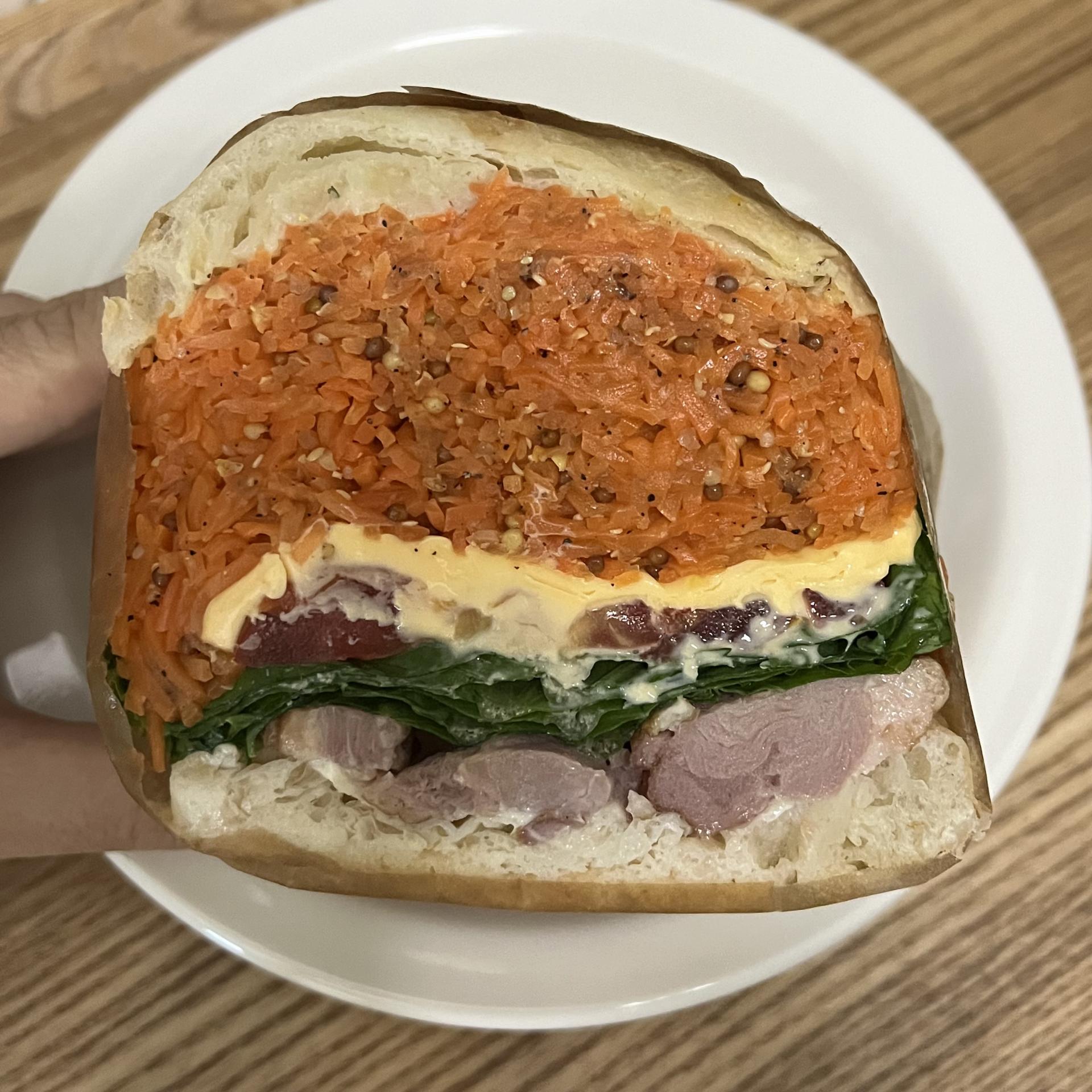 커피원의 대표 메뉴는 다양한 종류의 샌드위치인데요, 특히 훈제오리당근라페샌드위치가 인기랍니다. 가격은 대략 10,000원 정도로, 요즘 물가를 고려하면 합리적인 편이에요. 샌드위치는 신선한 재료로 만들어져서 맛이 정말 좋았어요.