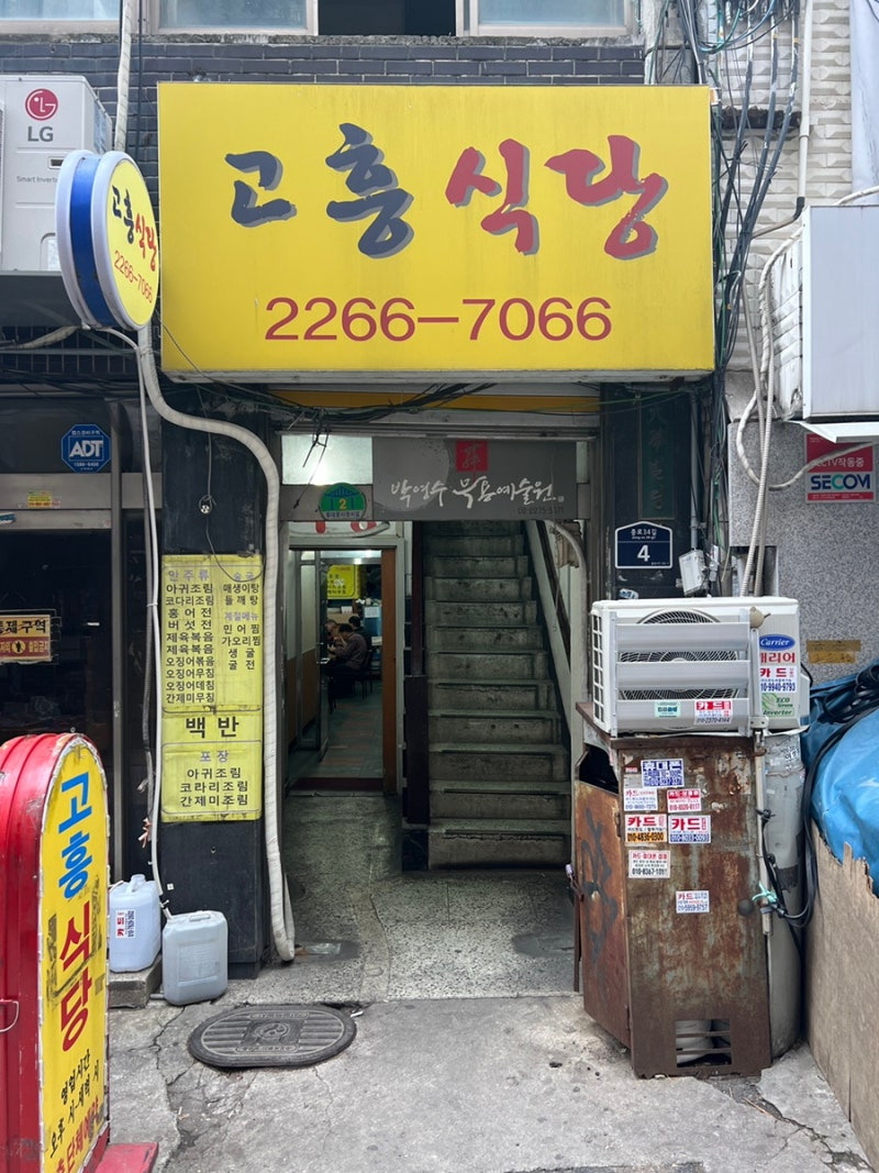 고흥식당은 종로5가에 위치해 있어요. 이곳은 지하철 5호선 종로5가역에서 도보로 5분 거리에 있어 접근성이 아주 좋아요. 식당의 입구는 밝은 노란색 간판이 눈에 띄는데,