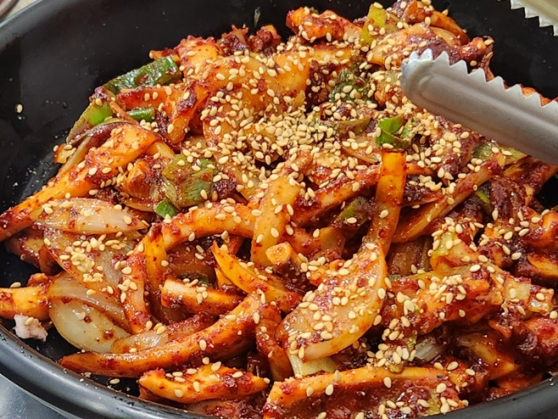 특히 추천하고 싶은 메뉴는 매콤한 오징어 볶음이에요.