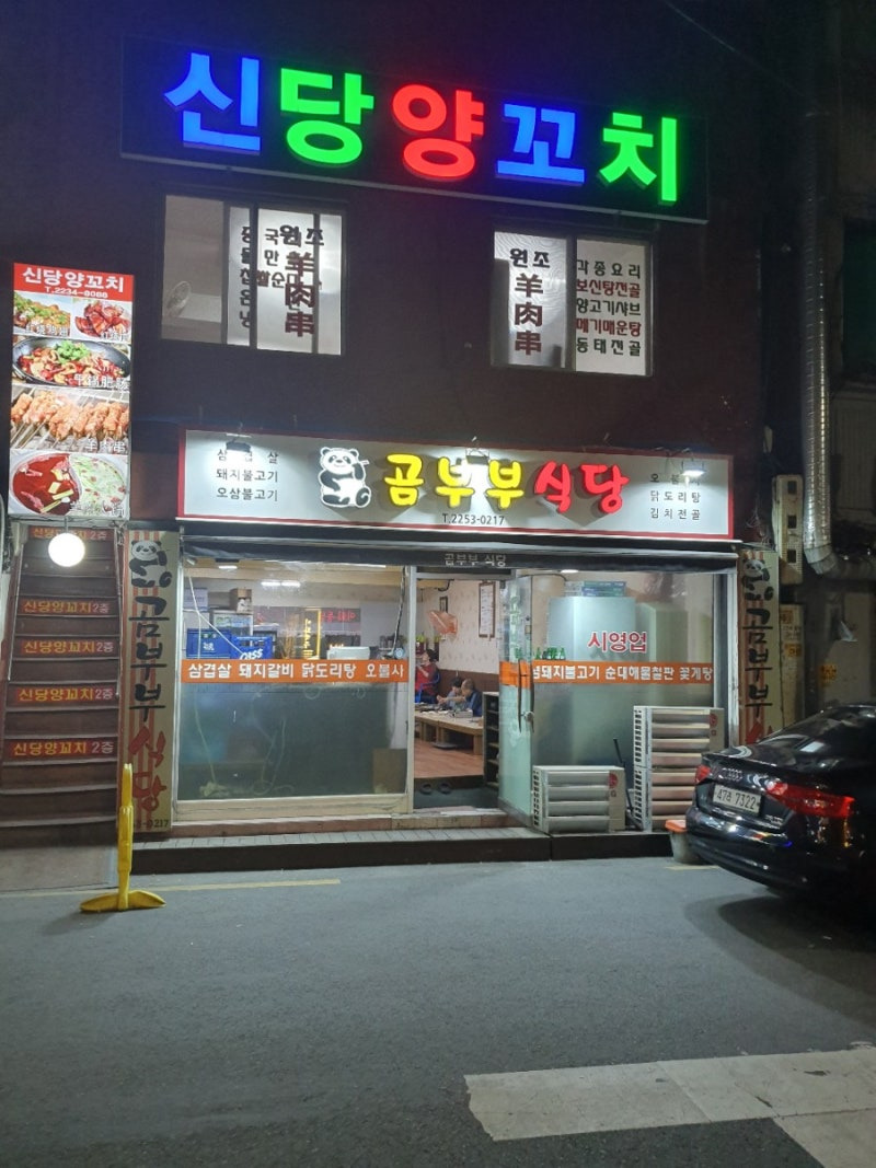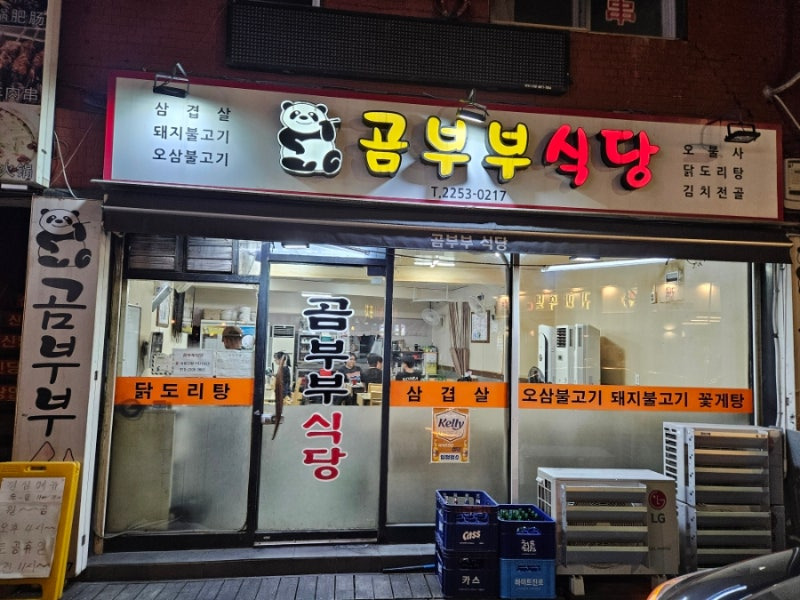 곰부부식당은 신당동에 위치해 있으며, 외관에서부터 귀여운 판다 로고가 눈에 띄어요.