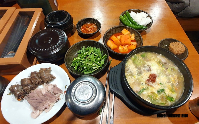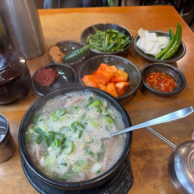 이곳의 추천 메뉴는 바로 순대국밥이에요. 가격은 약 8,000원으로, 푸짐한 양과 깊은 맛을 자랑해요. 순대국밥 외에도 수육과 함께 나오는 정식 메뉴도 인기인데, 가격은 10,000원 정도에요.