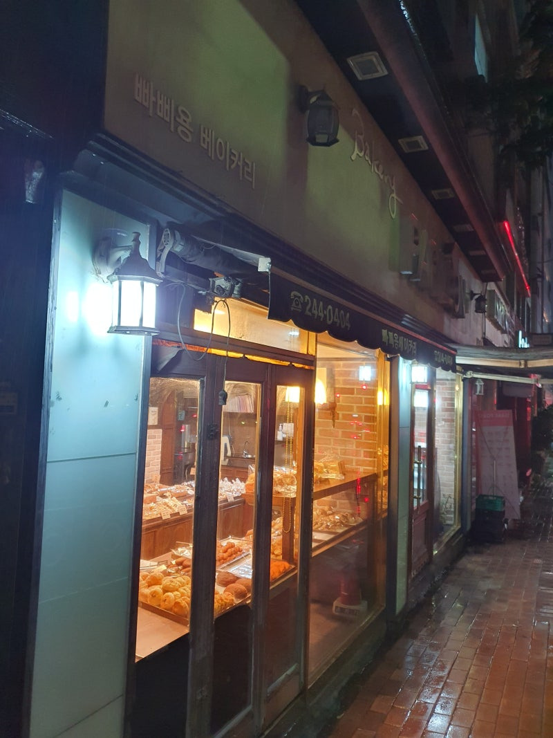 빠삐용은 중구에 위치해 있으며, 외관부터 아기자기한 매력을 뽐내고 있어요. 돌담으로 된 외벽과 줄무늬 차양막이 인상적이며, 입구 옆에는 다양한 제품을 광고하는 초록색 간판이 있어요. 입구 근처에는 화분이 놓여 있어 따뜻한 느낌을 주고, 주변은 패턴이 있는 포장도로와 벤치가 있어 방문객들이 편안하게 쉴 수 있는 공간을 제공합니다. 이곳의 전체적인 분위기는 아늑하고 초대하는 느낌이 들어서, 들어서는 순간부터 기분이 좋아지더라고요.
