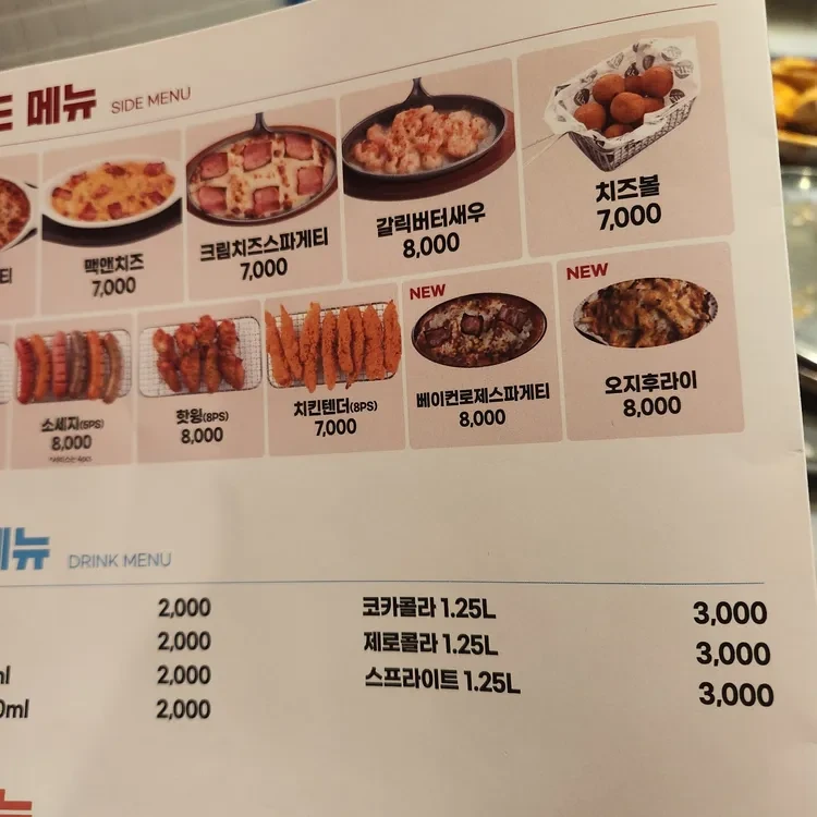 이 외에도 크림치즈스파게티(8,000원)와 갈릭버터새우(8,000원) 같은 사이드 메뉴도 인기랍니다.
