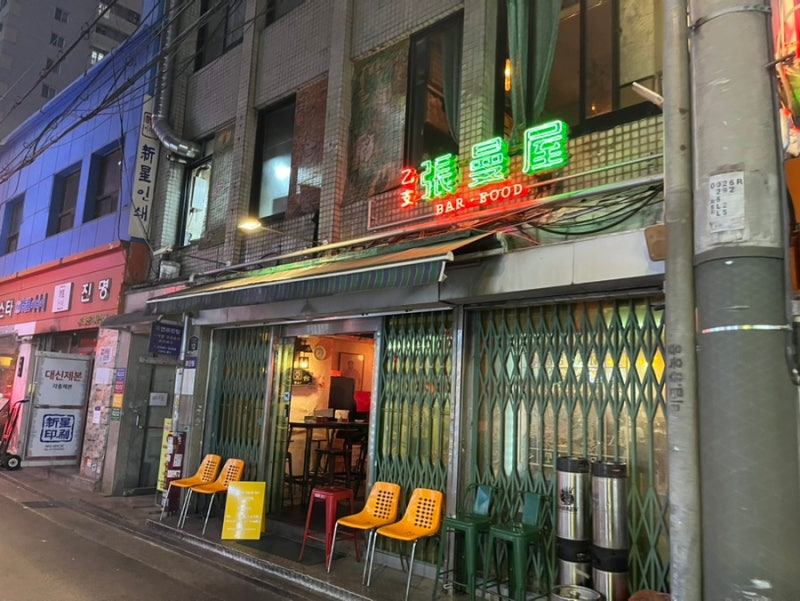 식당 외부는 화려한 네온사인과 함께 다양한 색상의 의자들이 놓여 있어, 지나가는 사람들의 시선을 사로잡아요. 이곳은 단순한 식당이 아니라, 하나의 문화 공간처럼 느껴졌어요.