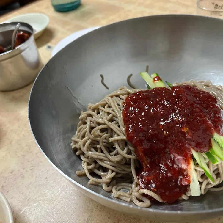 마지막으로, 처가집의 대표 메뉴인 냉소바도 꼭 드셔보세요. 시원하고 매콤한 소스가 일품이에요!