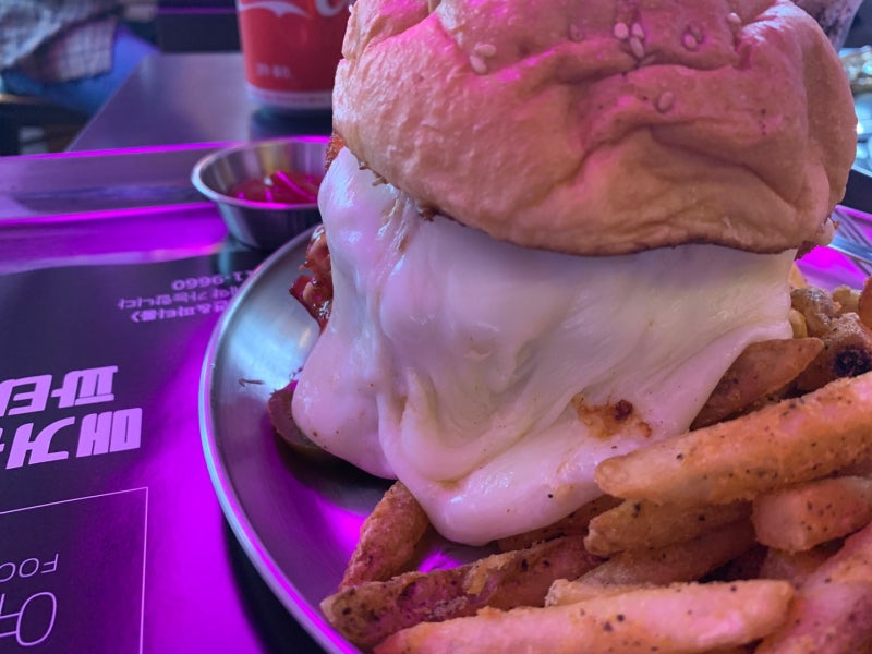 제가 청시행을 방문했을 때, 친구들과 함께 버거를 주문했어요. 버거가 나오기까지 조금 시간이 걸렸지만, 그 기다림이 아깝지 않을 만큼 맛있었어요. 패티는 육즙이 가득하고, 치즈는 녹아내려서 정말 맛있었답니다. 그리고 고구마튀김은 바삭하면서도 달콤해서 계속 손이 가더라고요.