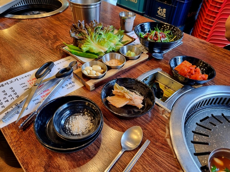 또한, 사이드 메뉴로는 신선한 쌈채소와 다양한 소스가 제공되는데, 이 소스와 함께 고기를 싸먹으면 정말 맛있답니다.