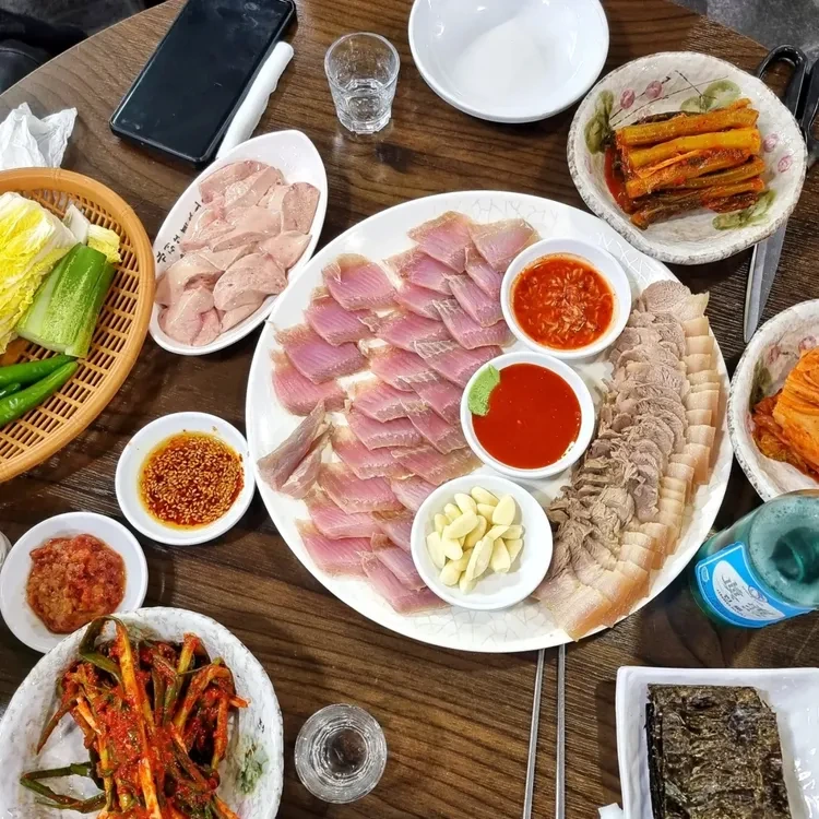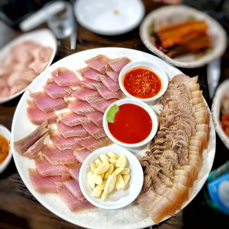홍어천국의 추천 메뉴는 여러 가지가 있지만, 특히 홍어삼합과 홍어애탕을 꼭 드셔보시길 권해요. 홍어삼합은 신선한 홍어와 함께 다양한 반찬이 제공되며, 그 조화가 정말 일품이에요. 홍어애탕은 깊고 진한 국물 맛이 일품으로, 홍어의 풍미를 잘 살리고 있어요.